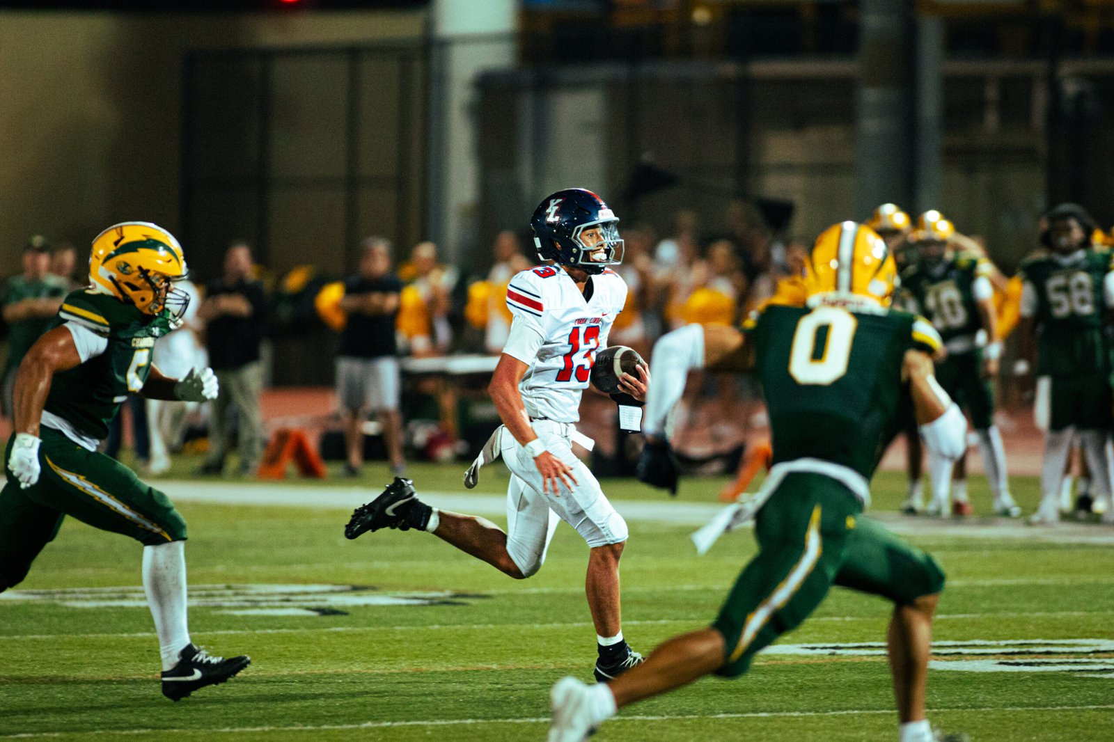 The first quarter was a defensive battle, as both teams traded punts and Edison’s early drives were stopped by Yorba Linda defenders Blake Thorp and Chase Sparks. Neither team could break through, and the opening quarter ended scoreless.